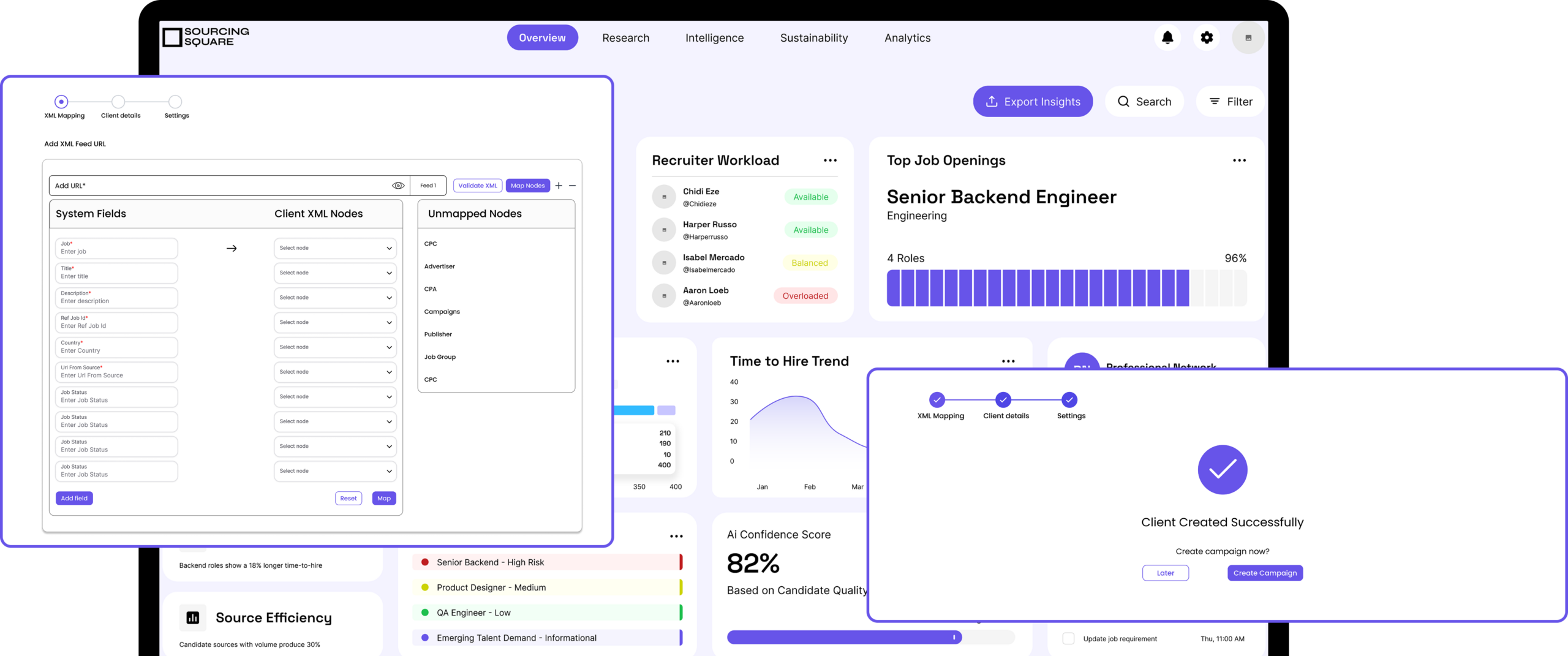 Import jobs from your ATS or create campaigns manually. Set budgets, targeting parameters, and KPIs.